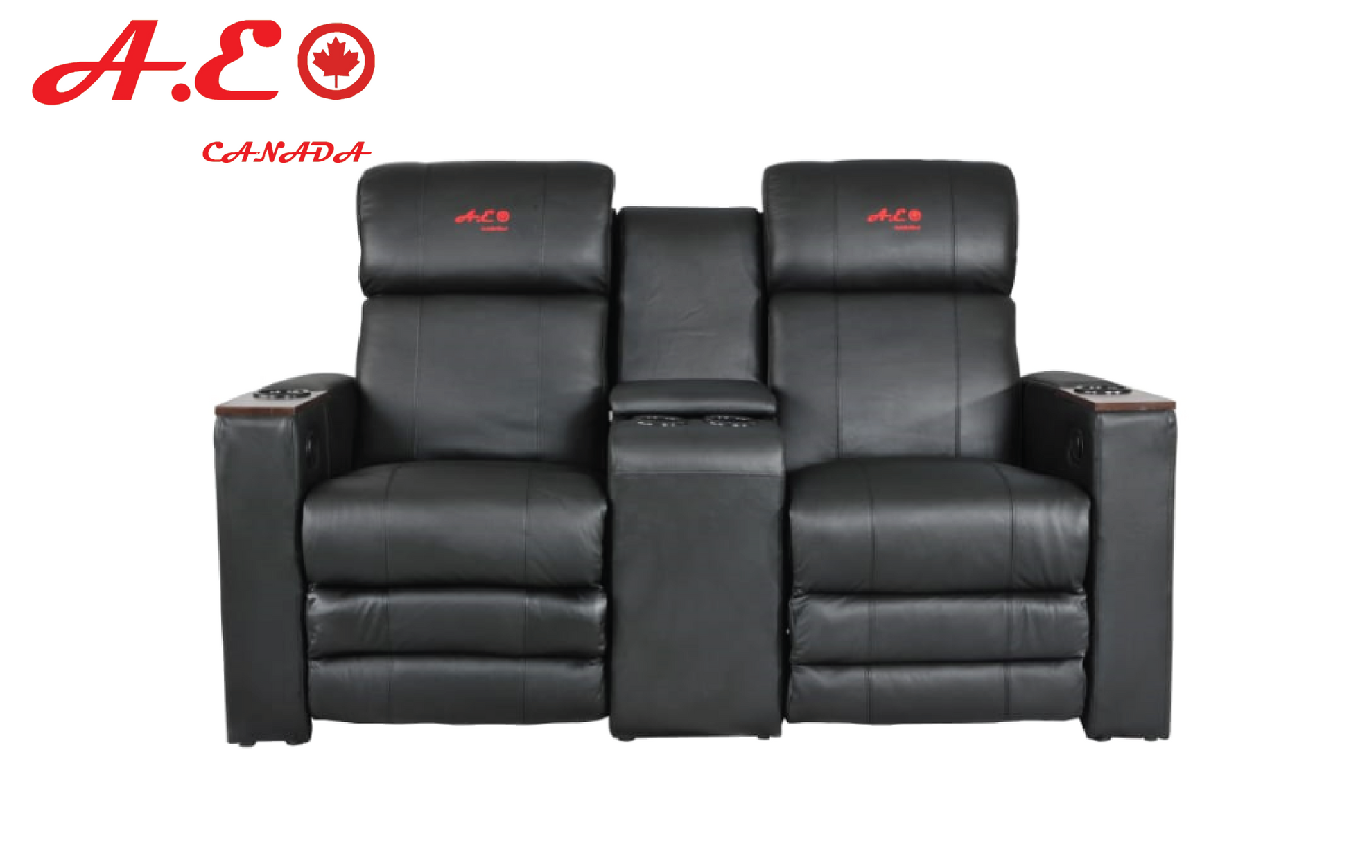 A.E Canada Manual Double Recliner Sofa Leather Black