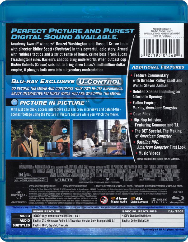 Nobody used to notice Frank Lucas (Washington), the quiet driver to one of the inner city’s leading black crime bosses. But when his boss suddenly dies, Frank exploits the opening in the power structure to build his own empire. Through ingenuity and a strict business ethic, he comes to rule the inner-city drug trade, flooding the streets with a purer product at a better price. Lucas outplays all of the leading crime syndicates and becomes not only one of the city’s mainline corrupters, but part of its circle of legit civic superstars. Richie Roberts (Crowe) is an outcast cop who believes someone is climbing the rungs above the known Mafia families. The destinies of these two men will become intertwined as they approach a confrontation where only one of them can come out on top.