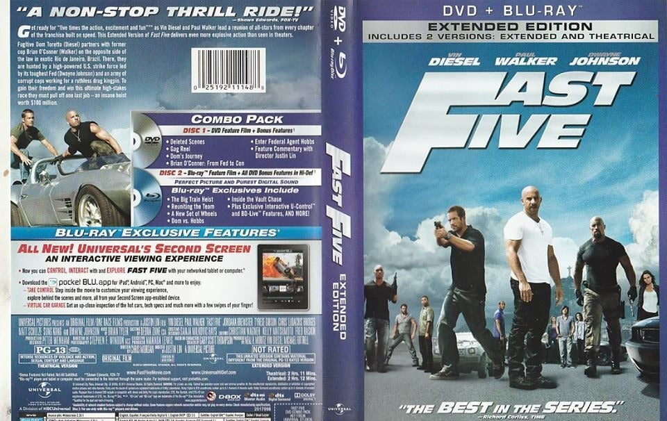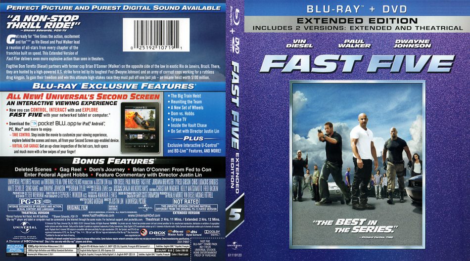 Get ready for “five times the action, excitement and fun” (Shawn Edwards, FOX-TV) as Vin Diesel and Paul Walker lead a reunion of all-stars from every chapter of the explosive franchise built on speed. Fugitive Dom Toretto (Diesel) partners with former cop Brian O'Conner (Walker) on the opposite side of the law in exotic Rio de Janeiro, Brazil. There they are hunted by a high-powered US strike force led by its toughest Fed (Dwayne Johnson) and an army of corrupt cops working for a ruthless drug kingpin. To gain their freedom and win this ultimate high-stakes race, they must pull off one last job - an insane heist worth $ 100 million. Starring: Vin Diesel, Paul Walker, Dwayne 'The Rock' Johnson, Jordana Brewster, Tyrese Gibson, Chris 'Ludacris' Bridges, Matt Schulze, Sung Kang, Gal Gadot, Tego Calderon, Don Omar, Elsa Pataky,