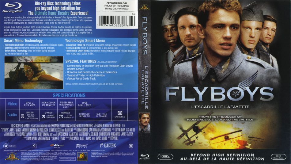 There's a familiar cliché to match every thrilling scene of aerial combat, but director Tony Bill manages to keep it all interesting, from the romance between a young American maverick (James Franco) and a pretty French girl (newcomer Jennifer Decker) to the exciting action in the air, which includes a stock variety of heroes (many of them composites of real-life WWI pilots) and an intimidating villain known only as "The Black Falcon," whose Fokker Dr-1 triplane (one of many in the film) recalls the exploits of German "ace of aces" Manfred von Richtofen, the dreaded "Red Baron" of legend. With impeccable production values that will impress even the most nit-picking aviation buffs, Flyboys (like Superman Returns and Apocalypto, also released in 2006) was also one of the first feature films to be shot with Panavision's state-of-the-art Genesis digital cameras, resulting in beautiful images that meet or exceed the visual nuance of film. Flyboys also benefits from painstaking attention to physical detail, making it easier to forgive its shortcomings as a generic and formulaic slice of romanticized history. So while some viewers may have wished for a more realistic and grown-up depiction of the Lafayette Escadrille, it's safe to say that Flyboys will be thrilling its target audience for many years to come. --Jeff Shannon
