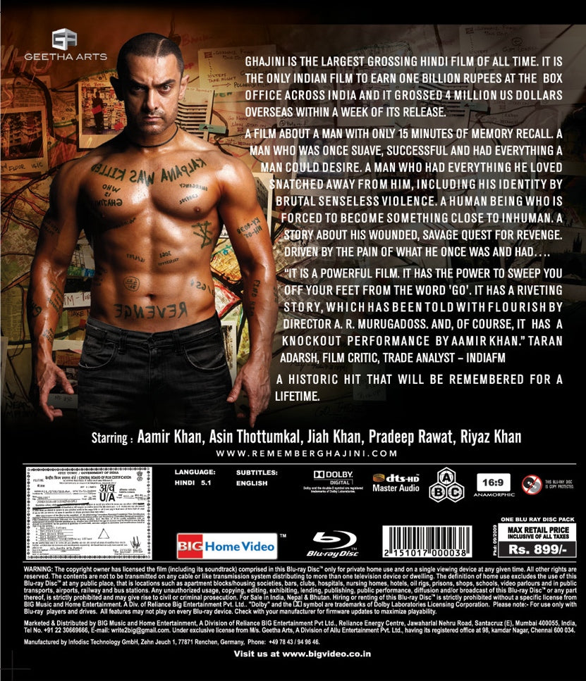Ghanini is the largest grossing Hindi film of all time. It is the only Indian film to earn one billion rupees at the box office across India and it grossed 4 Million US Dollars overseas within a week of its release.