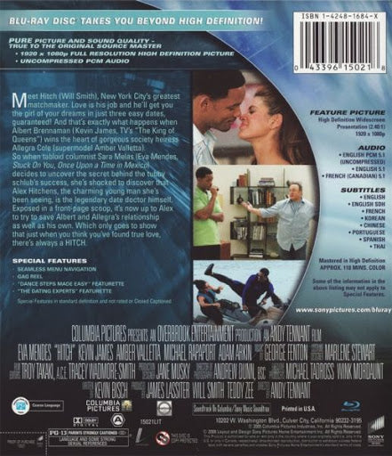 Meet Hitch (Will Smith), New York City's greatest matchmaker. Love is his job and he'll get you the girl of your dreams in just three easy dates, guaranteed! And that's exactly what happens when Albert Brennaman (TV's Kevin James, "The King of Queens") wins the heart of gorgeous society heiress Allegra Cole (supermodel Amber Valletta). So when tabloid columnist Sara Melas (Eva Mendes, Stuck On You, Once Upon a Time in Mexico) decides to uncover the secret behind the tubby schlub's success, she's shocked to discover that Alex Hitchens, the charming young man she's been seeing, is the legendary date doctor himself. Exposed in a front-page scoop, it's now up to Alex to try to save Albert and Allegra's relationship as well as his own. Which only goes to show that just when you think you '