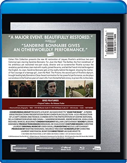 Cohen Film Collection presents the new 4K restoration of Jaques Rivette's ambitious two-part historical epic starring Sandrine Bonnaire. For Joan the Maid: The Battles, the first installment of his ambitious yet restrained two-part study, director and co-screenwriter Rivette surveys the revelatory period where Joan met with royalty, joined the army, and led the French into battle against the English. As Joan, Sandrine Bonnaire gets at the reality behind the legend, showing the matter-of-fact courage of a teenage girl. Joan the Maid: The Prisons, the second part of Rivette's diptych, brought leading lady Bonnaire a César Award nomination for her powerful performance, as she plays out windows in the final two years of Joan's life, from the battlefield victory, to prison life, to the stake.