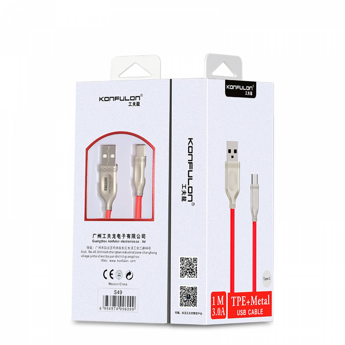 Konfulon S47 3A USB Type-C Soft Data Cable, Fast Charge for Android