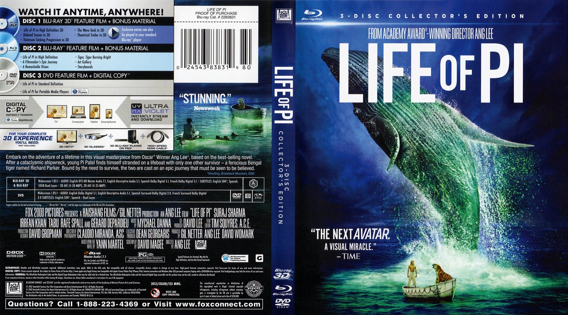 LIFE OF PI (BLU-RAY / 3D / DVD / DC / UV / 3 DISC)