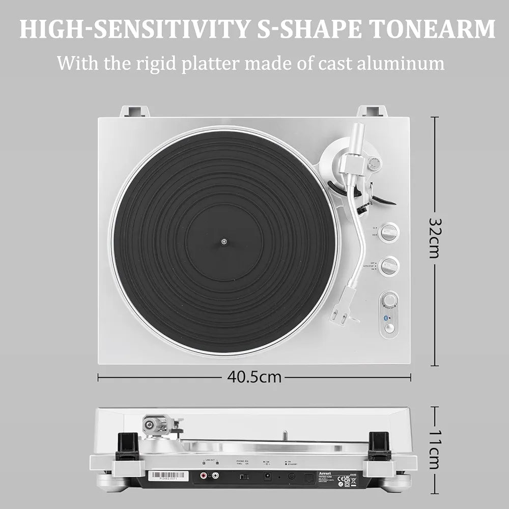 - SUPERIOR SOUND REPRODUCTION - High sensitivity S-shaped tone arm, which accurately reads signals from the vinyl record slot, delivering rich and immersive audio.