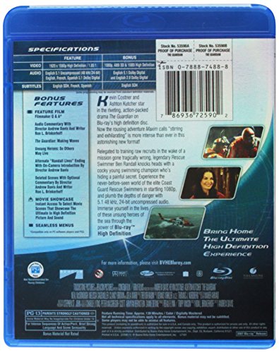 Kevin Costner and Ashton Kutcher star in the riveting, action-packed drama THE GUARDIAN on Blu-ray's high definition disc. Now the rousing adventure "Maxim" calls "stirring and exhilarating" is more intense than ever in this astonishing new format! Relegated to training raw recruits in the wake of a mission gone tragically wrong, legendary Rescue Swimmer Ben Randall knocks heads with a cocky young swimming champion who's hiding a painful secret. Experience the never-before-seen world of the elite Coast Guard Rescue Swimmers in startling 1080p, and plumb the depths of danger with 5.1 48 kHz, 24-bit uncompressed audio. Immerse yourself in the lives of these unsung heroes of the sea through the power of Blu-ray High Definition.