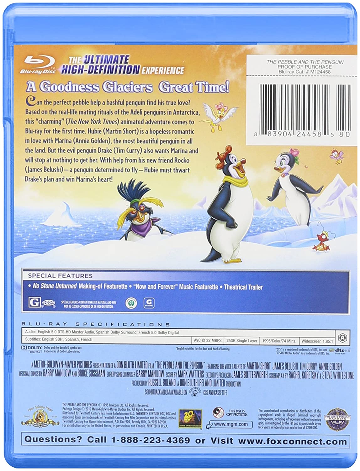 A shy penguin has 10 days to win his mate or lose her to his rival. Animated. Voices: Martin Short, Annie Golden, Tim Curry, James Belushi.