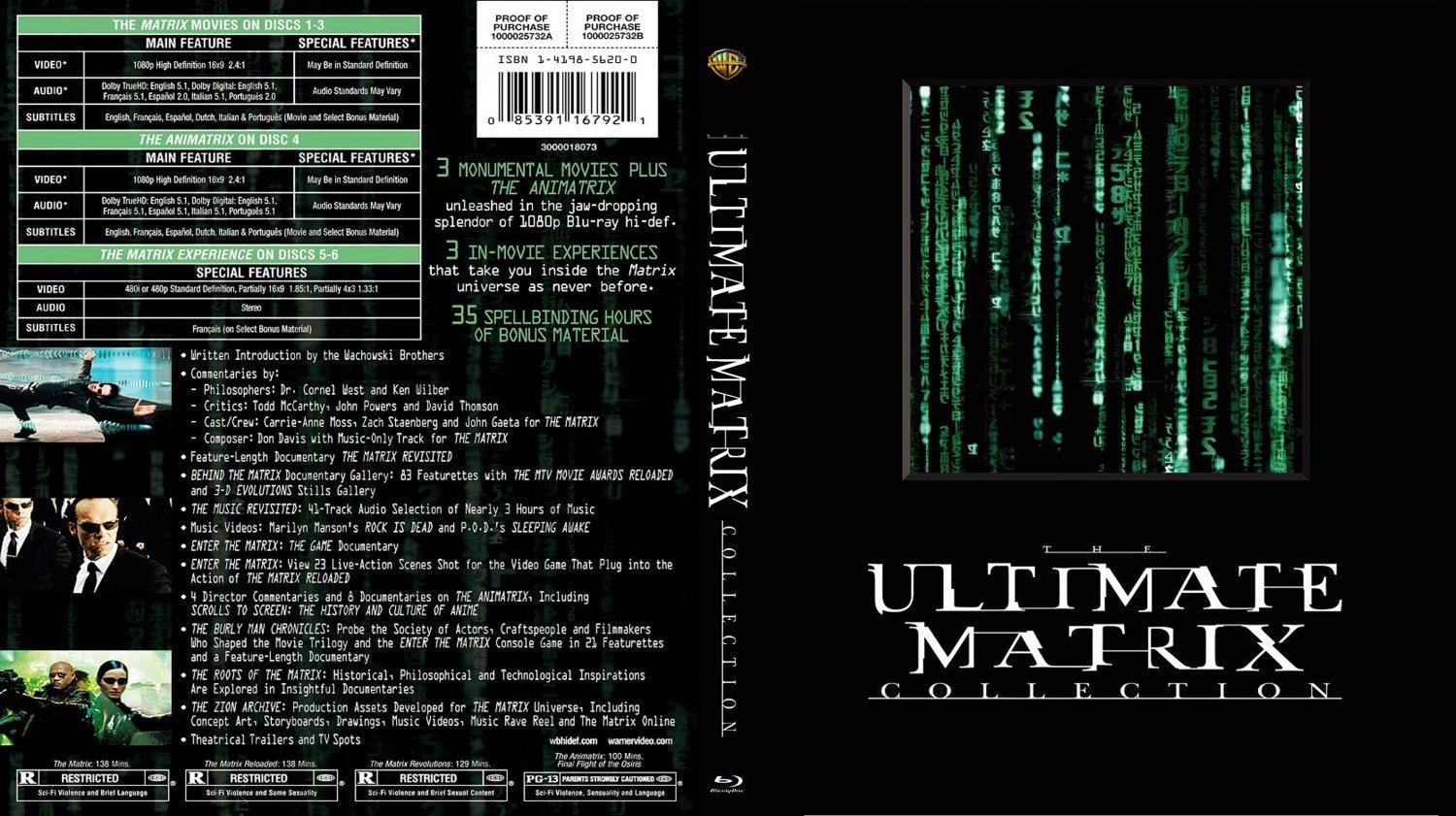 Ten-disc set includes "The Matrix," "The Matrix Reloaded," "The Matrix Revolutions," the documentary "The Matrix Revisited," and "The Animatrix". Standard and Widescreen (Enhanced); Soundtracks: English Dolby TrueHD 5.1, Dolby Digital 5.1, French Dolby Digital 5.1, Spanish Dolby Digital 5.1, Dolby Digital stereo, Italian Dolby Digital 5.1, Portuguese Dolby Digital 5.1, Dolby Digital stereo; Subtitles: English (SDH), French, Spanish, Dutch, Italian, Portuguese; audio commentary; "making of" documentaries; photo gallery; storyboards; music video; TV spots; theatrical trailers; more.