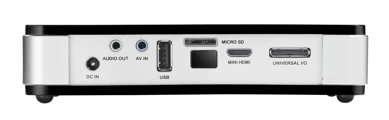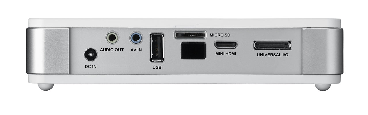 | I/O Connection Ports | VGA-In (15pin D-Sub) (VGA adaptor - 24pin Universal input), VGA adaptor - 24pin Universal input, HDMI Number of Ports , Composite Video (3.5mm AV In), Audio-Out (Mini-Jack), USB type A for Display(Frame display) and JPG reader(Photo: Jpeg / Video: Mpeg4,H.264), USB A (1xMedia), SD (Micro SD) |